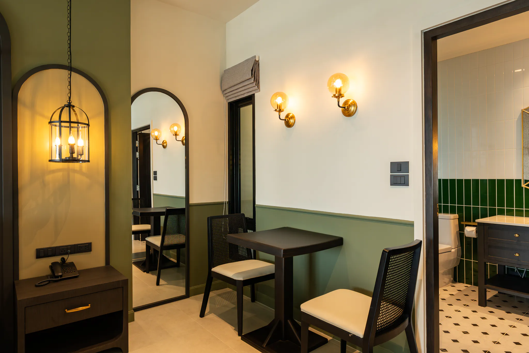 Relax in the seating area with a sofa and table, or admire your reflection in the full-body mirror. The room also includes a minibar and high-quality amenities.