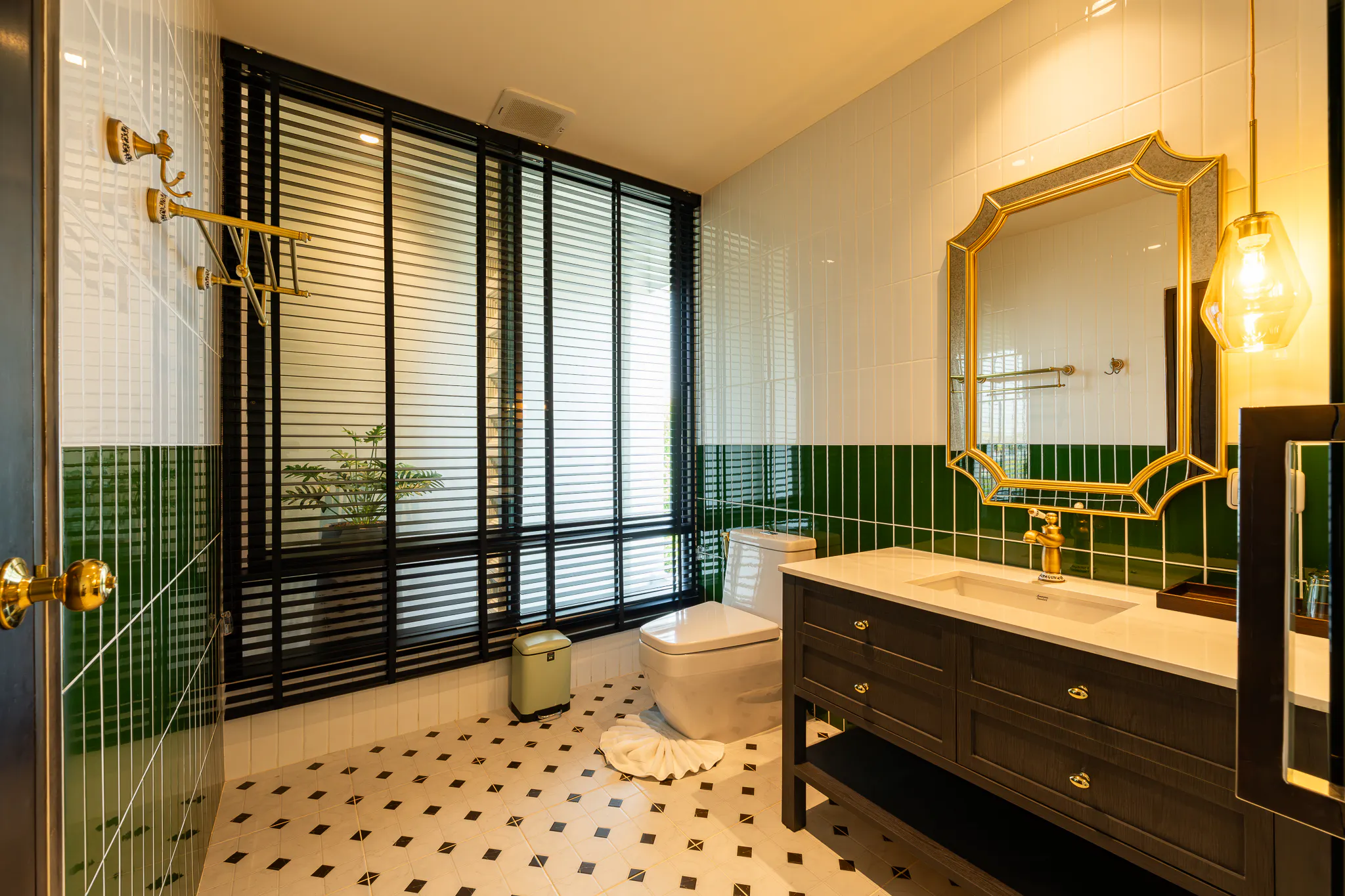 Step out onto your private balcony and enjoy views of the garden and pool from the bathtub. The decor blends modern sophistication with colonial charm.