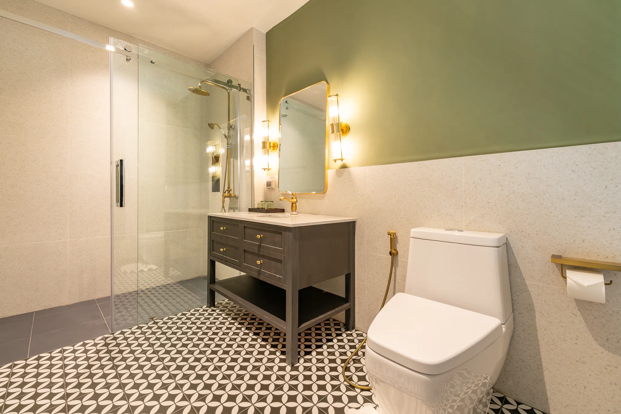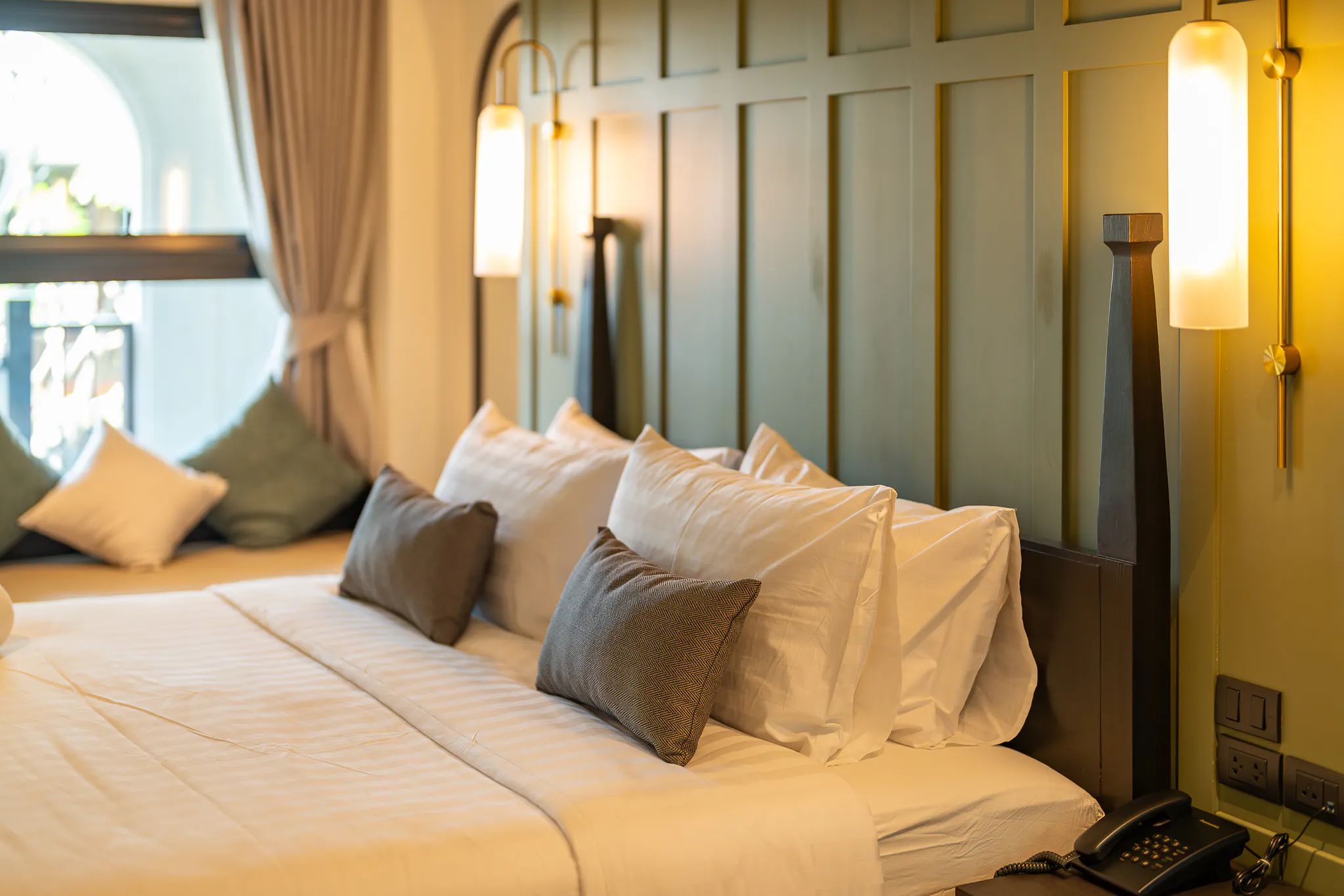 ห้องตกแต่งสไตล์โคโลเนียลสมัยใหม่ พร้อมสิ่งอำนวยความสะดวกคุณภาพสูงและการเข้าถึงที่เหมาะสมสำหรับผู้ใช้รถเข็น รวมถึงอุปกรณ์เฉพาะสำหรับแขกผู้พิการ เพื่อให้การเข้าพักของคุณสะดวกสบายที่สุด