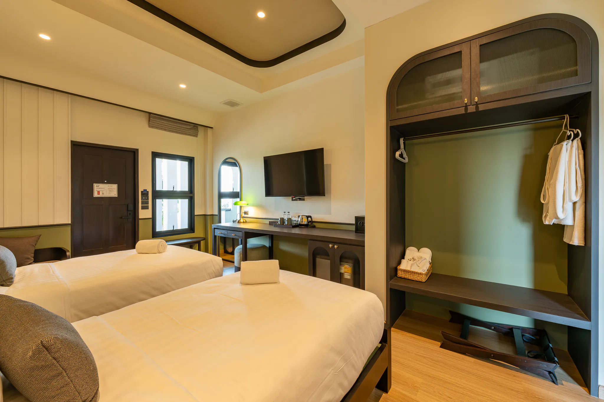 ค้นพบความลงตัวของความสะดวกสบายและฟังก์ชันการใช้งานในห้องพักสแตนดาร์ด เตียงคู่ ขนาดห้องพัก 27.5 ตารางเมตร ที่ออกแบบอย่างลงตัวพร้อมเฟอร์นิเจอร์ครบครัน เช่น โซฟา โต๊ะทำงาน และกระจกเต็มตัว